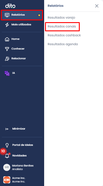 O Resultados de Canais é o relatório que permite analisar o desempenho das suas campanhas de e-mail, SMS e push mobile.