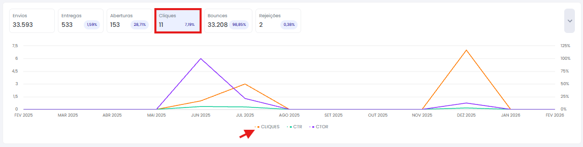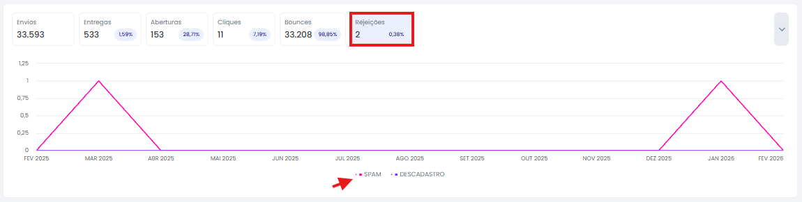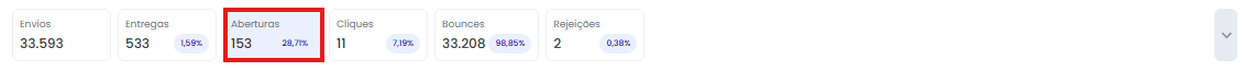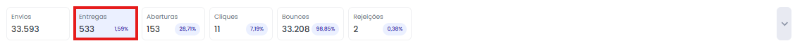 Nota: Esta métrica não contabiliza os e-mails que caem na caixa de spam (estes são considerados envios entregues).