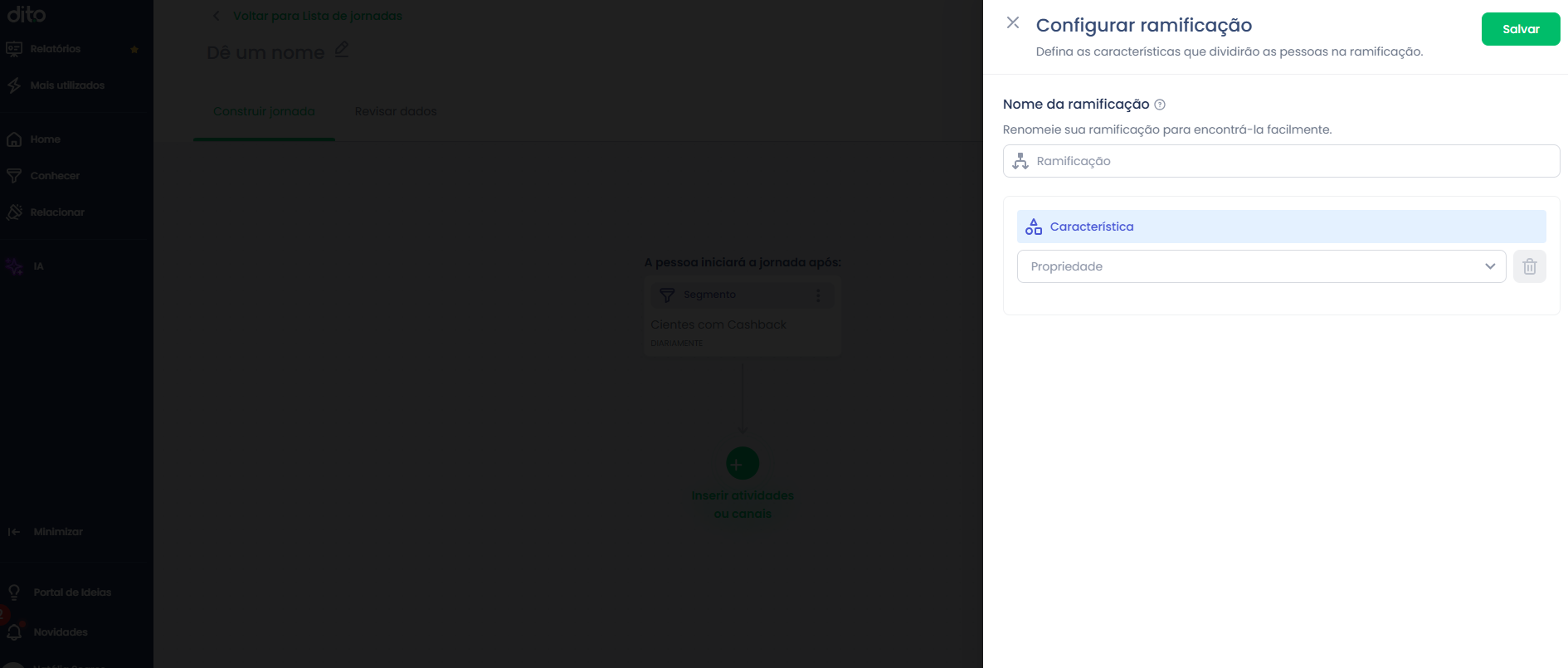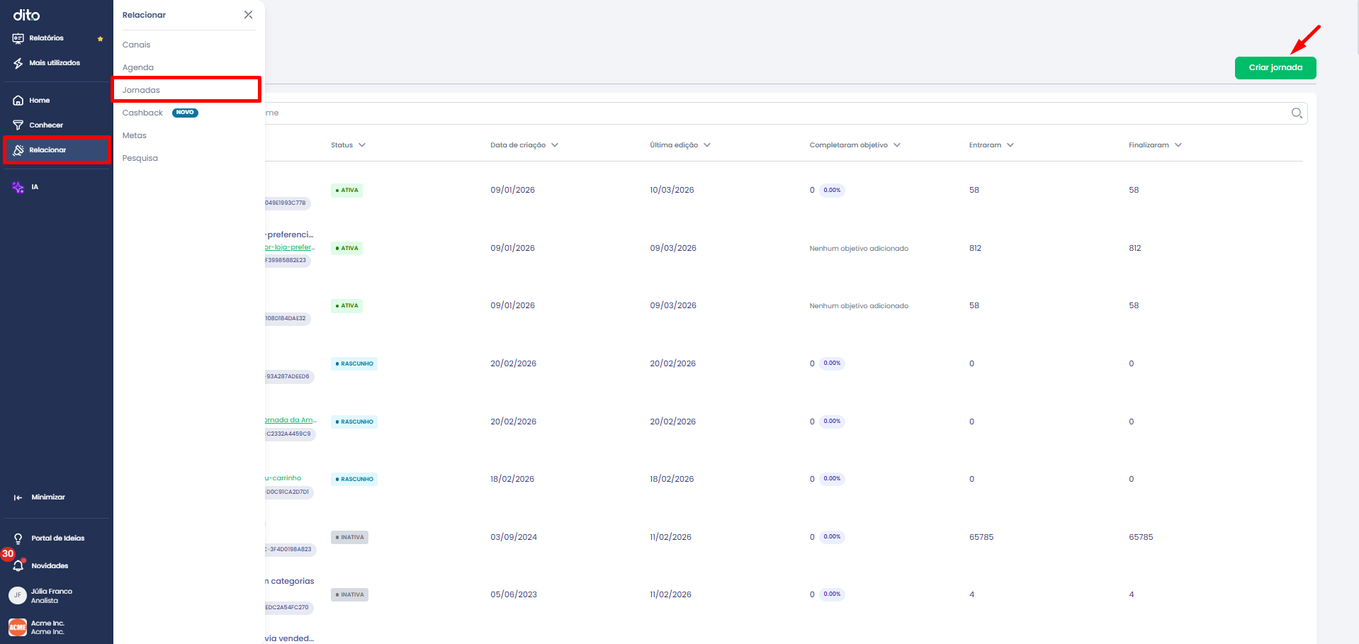 Passo 01: Clique no Menu Relacionar → Jornadas → Criar jornada