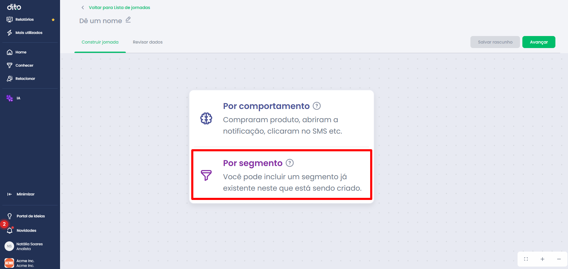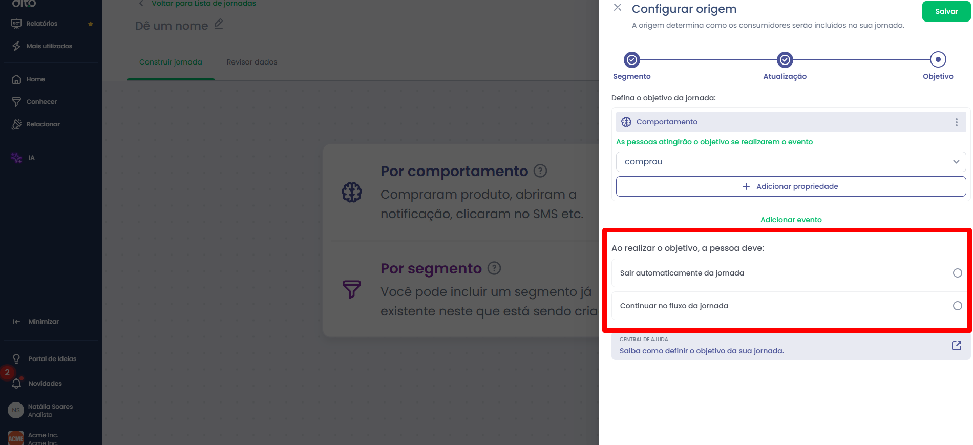 Após a definição da origem por comportamento, frequência de atualização e recorrência, chegou o momento de definir o objetivo da jornada.
