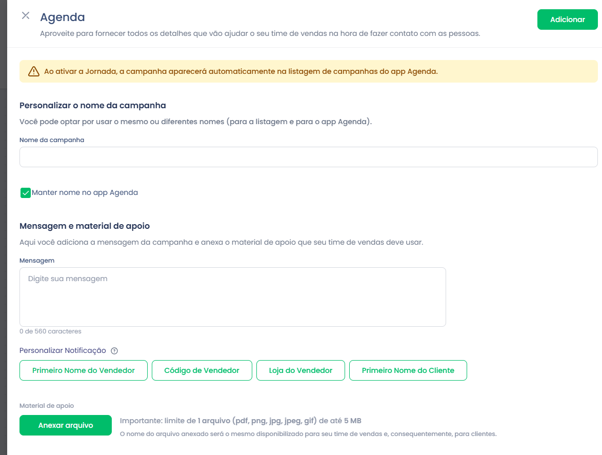 Campanhas: Use essa opção quando quiser enviar uma campanha na jornada.