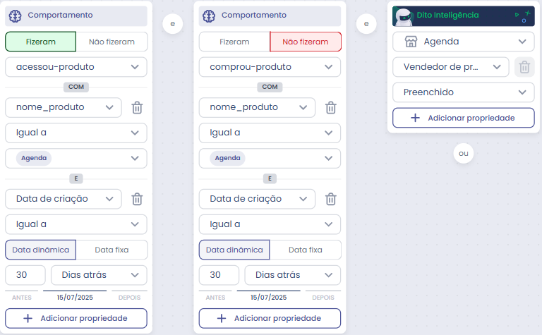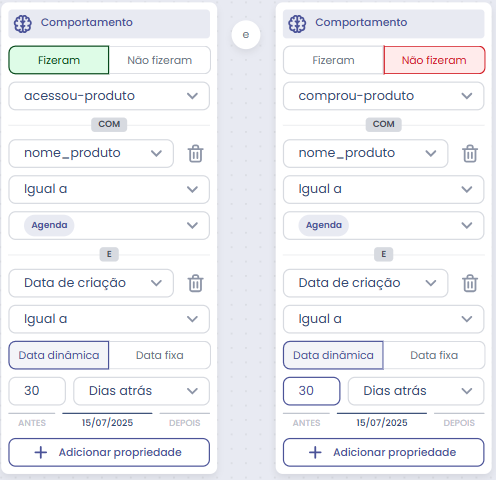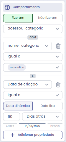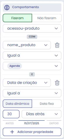 Sim — você pode misturar eventos como “acessou-produto” e “acessou-categoria” em uma mesma regra de segmento para refinamento.
