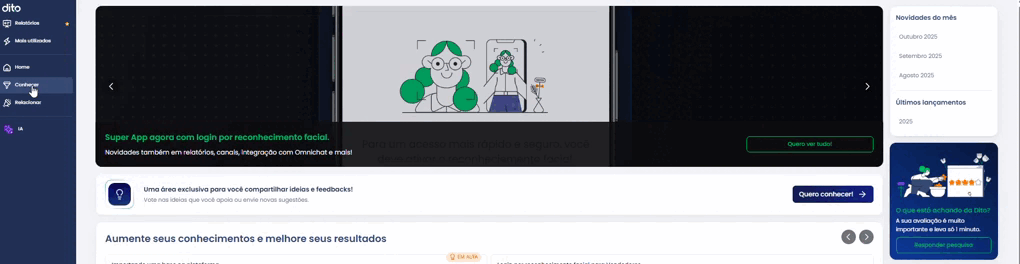 Entender o perfil de navegação dos seus clientes é muito importante nas comunicações, pois permitirá que você impacte de forma assertiva seus clientes de acordo com suas buscas. Aqui na Dito, você consegue segmentar as pessoas de acordo com as navegações por meio dos eventos de acesso.
