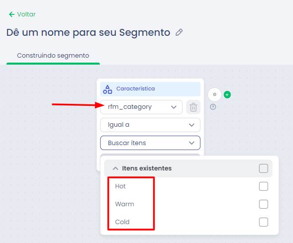 Importante: Essas características estão disponíveis na segmentação, mas não aparecem nos relatórios de RFM.
