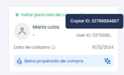 • O ID informado precisa corresponder exatamente ao User ID presente na ficha do cliente.
