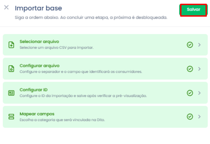 Passo 2 – Acessar e importar o arquivo no app.dito