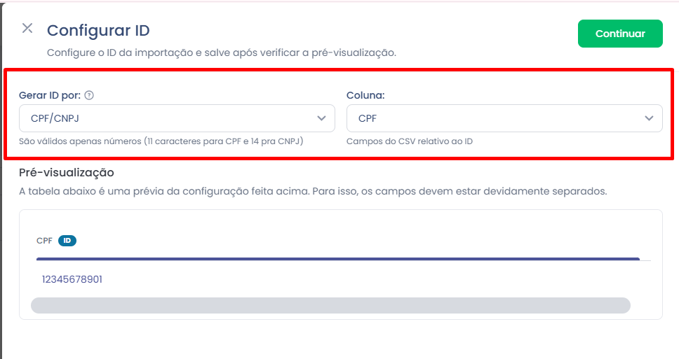 Faça upload do arquivo e configure o identificador (ID) do cliente conforme o campo correspondente.