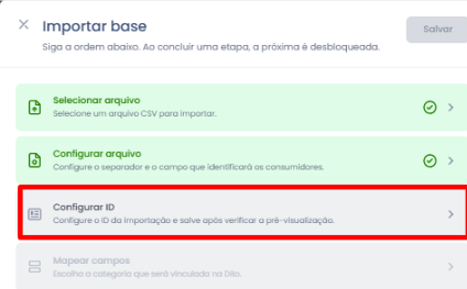 Após selecionar o ID, defina qual a coluna do arquivo que enviou, será considerado como o ID do usuário.