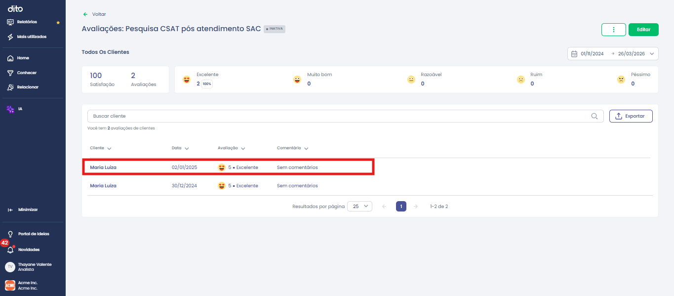 Persona:Analista CRM, Analista de e-commerce, Marketing