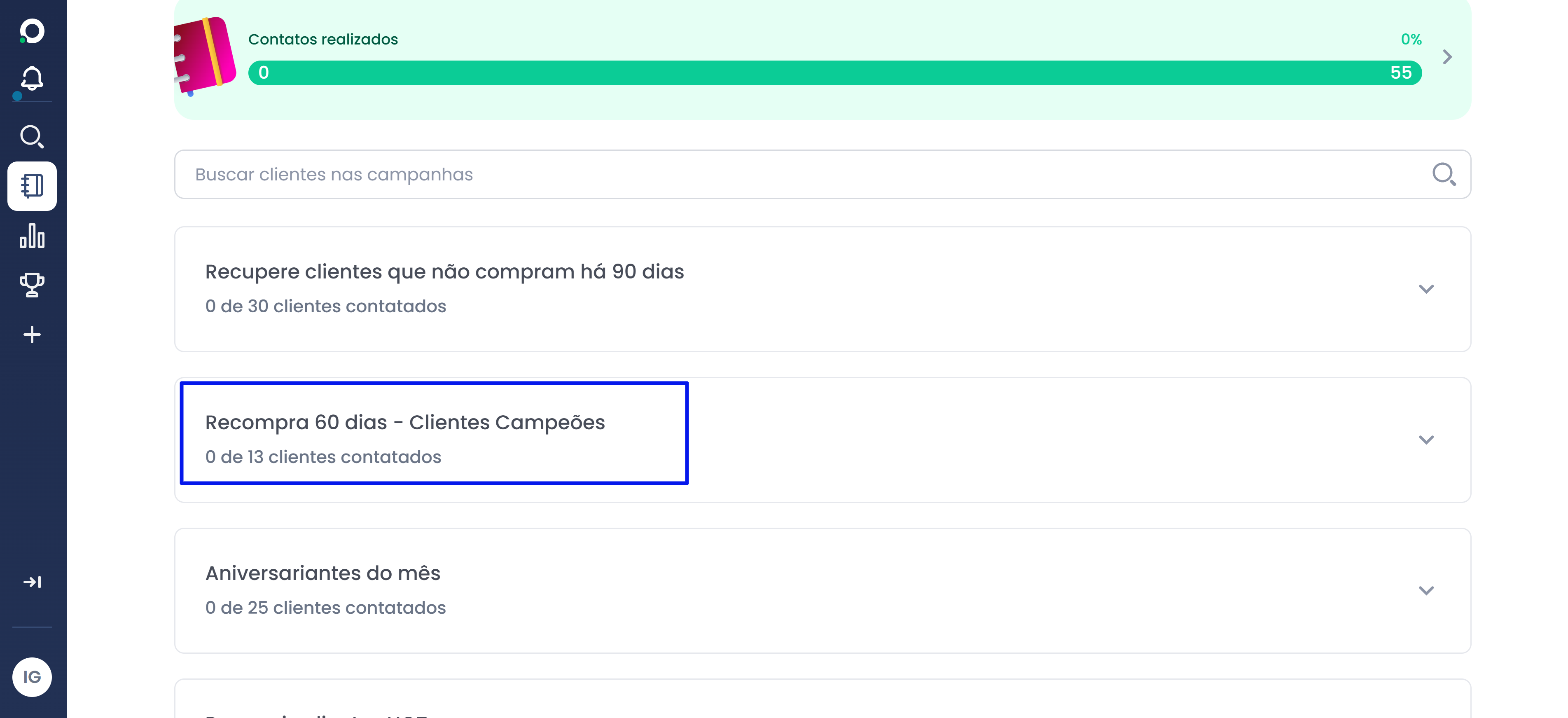 Passo 1.2 — Localizando o cliente através da lista de campanhas: