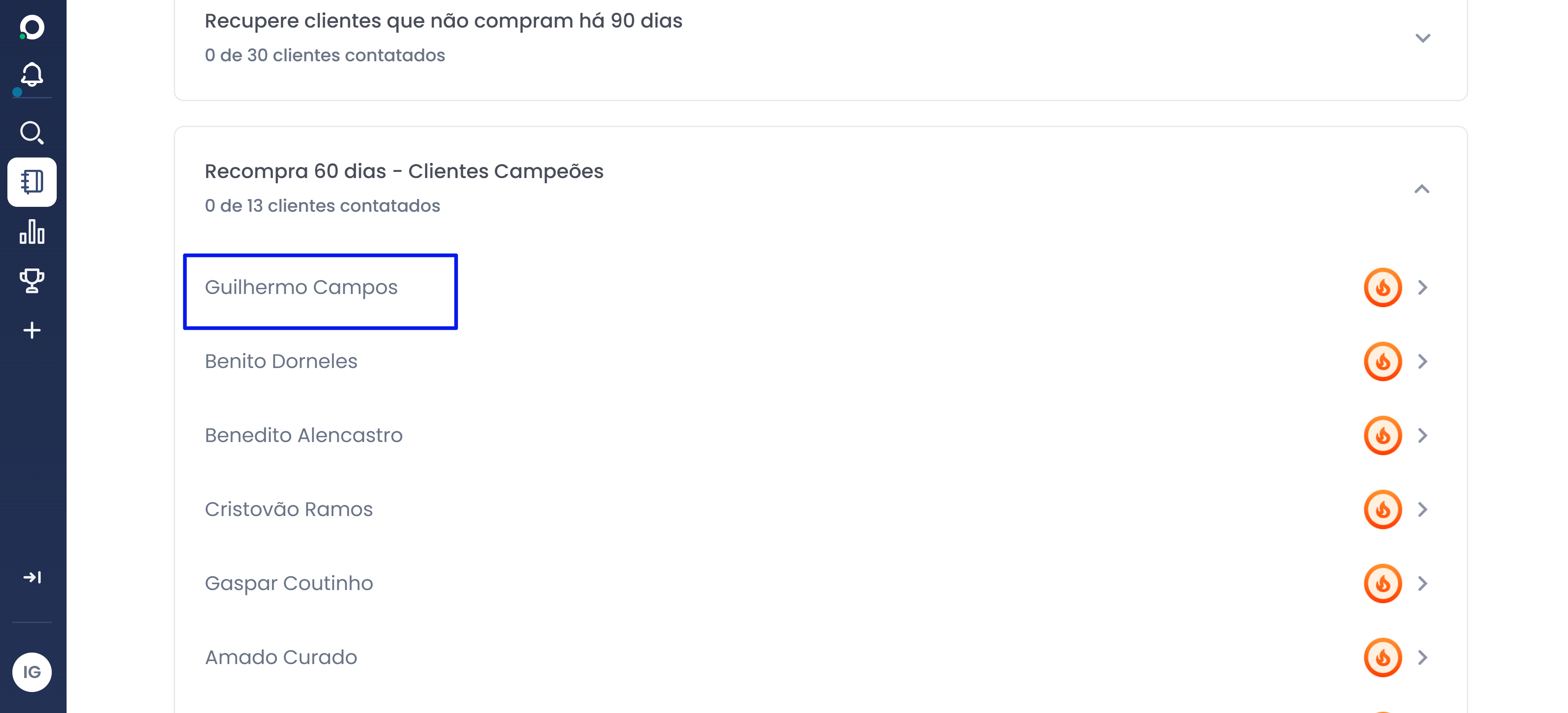 O resgate pode ser feito tanto após o vendedor buscar o cliente pelo campo de busca do Agenda Dito, quanto através da lista de campanhas.