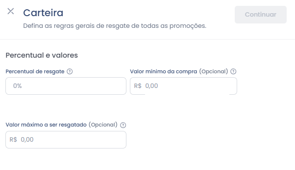 Loja de resgate no modelo de carteira: No modelo de carteira, a opção de resgate restrito à loja geradora não está disponível. Isso acontece porque o saldo pode ser composto por créditos originados em múltiplas lojas da rede.