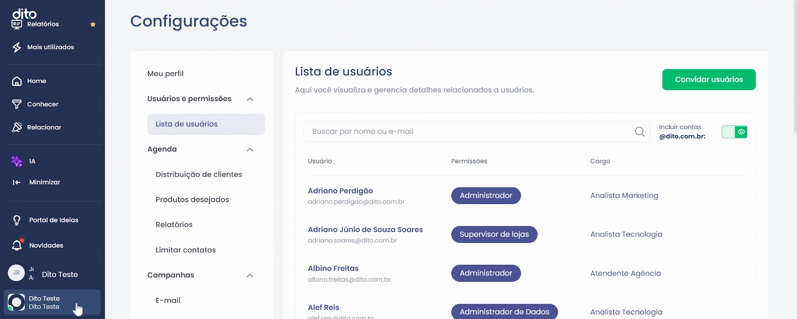 No menu principal, clique no logo da sua marca e acesse > Configurações