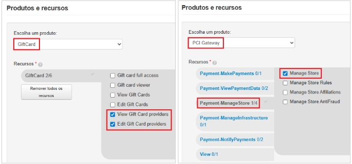 No recurso “Payment-ManageStore” habilite “Manage Store” (Gerenciar Loja)