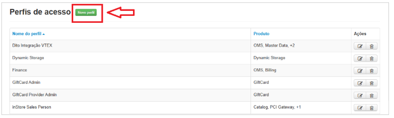 Crie um novo perfil custom que dê acesso às APIs de giftcard da VTEX.