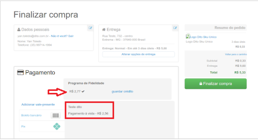 Acesse a loja VTEX com o login de um cliente que possua um cashback disponível.