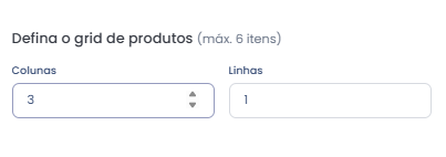 Selecione a quantidade de colunas e linhas para definir o número de produtos exibidos na vitrine.