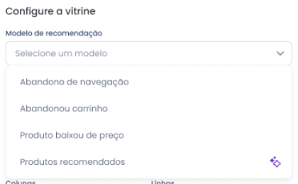 Escolha a estratégia de recomendação que deseja utilizar (detalhes no Glossário da Vitrine).