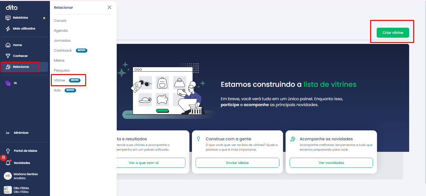 Veja o passo a passo para localizar e acessar a Vitrine de Produtos na plataforma.