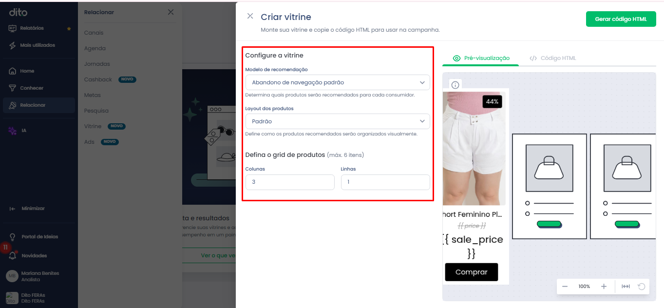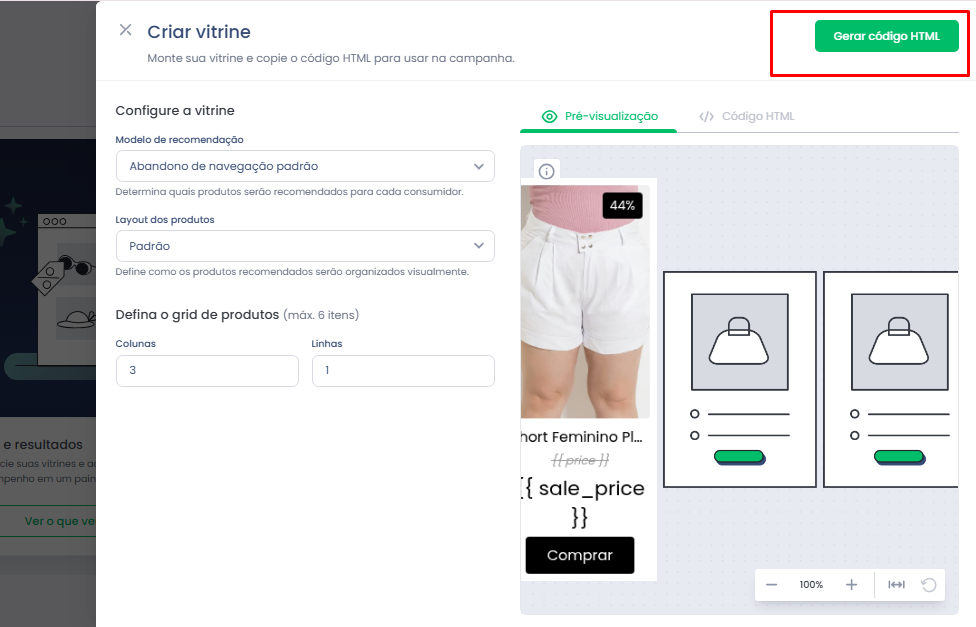 Utilize o Gerador de Vitrines para configurar sua vitrine e gerar o código HTML