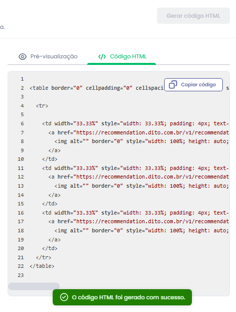 Clique em Gerar código HTML e copie o código exibido.
