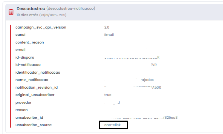 Isso pode ser identificado dentro do evento de descadastro como "one-click".
